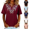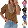חולצת קיץ לנשים עם מלמלות שרוול קצר צווארון וי רקמה קז'ואל פולאובר