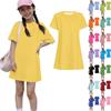 שמלת קיץ לילדים עם שרוולים קצרים, קז'ואל אופנתית, צווארון עגול