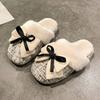 Girls heart velvet indoor home fluff shoes 2025 autumn and winter new Korean version sweet bow warm cotton slippers