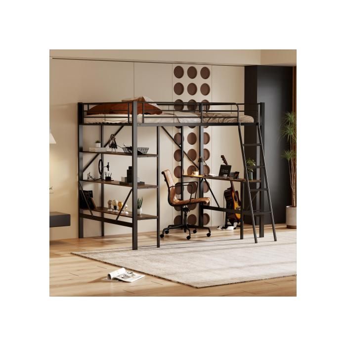Ce lit mezzanine en métal noir de 90x200 cm est robuste et stable, idéal pour optimiser l'espace. Avec un bureau et trois grandes étagères, il convient parfaitement aux étudiants et aux enfants. Certifié EN747, il assure la sécurité des enfants à partir de six ans. Montage facile, expédition d'Allemagne. Le vendeur confirme que ses produits sont conformes à toutes les lois applicables et ne sont proposés que s'ils sont conformes aux politiques de Joom et aux lois européennes sur la sécurité et la conformité des produits.