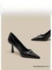2025 black temperament one-word with stiletto high heels women's niche design metal buckle pointed head shallow mouth single shoes women