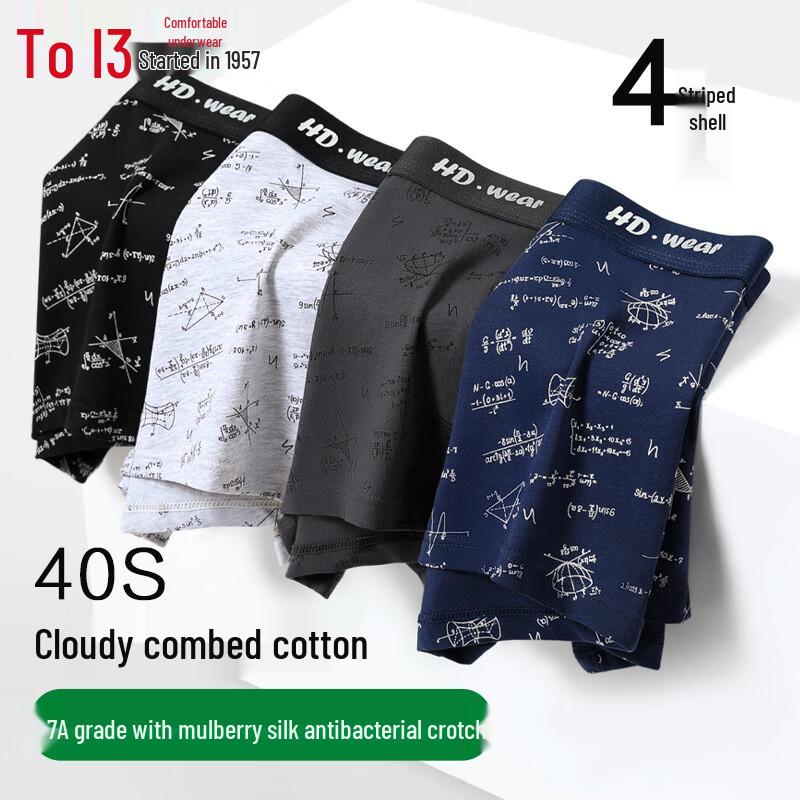 Hodo Men's 7A Antibacterial Combed Cotton Geometric Boxer Briefs 4-Pack