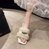 Retro Internet celebrity fairy wind word with fluffy slippers women wear 2025 autumn and winter new flat slippers