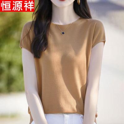 Hengyuanxiang Women's Short Sleeve Pure Cashmere Knit Top