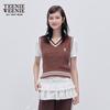 Teenie Weenie Women's Textured Stripe Color Block V-Neck Knitted Vest