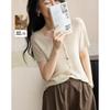 SanCai 2025 Autumn Lyocell Embroidered Slim Fit V-Neck Short Sleeve Knit Top