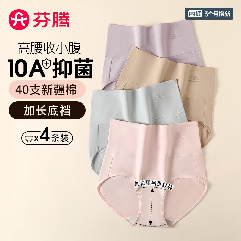 Fenteng Women's 10A Antibacterial High-Waist Cotton Briefs 4-Pack