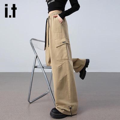 Izzueit Women's High-Waist Drawstring Wide-Leg Cargo Pants