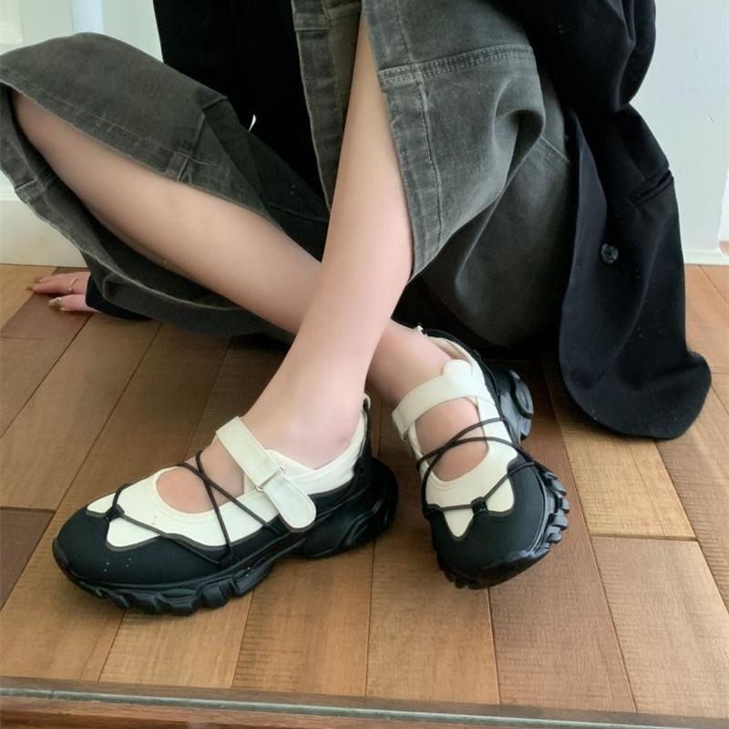 IPPEUM Ballerina Sneaker Shoes For Women Round Toe Black Mary Janes