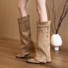 New Women's Leather High Boots Women Knee High Pointer Toe Heels Shoes Woman Trend Boots Pumps Snow Gladiator Boots