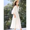 Embrace effortless style with the VICTORIA&VERA women's V-neck midi dress. Crafted from a comfortable blend of cotton, linen, and viscose, this mid-sleeve dress features a straight, H-shaped silhouette with a stylish side slit and a natural waist. It includes a coordinating belt for versatile styling, making it perfect for casual outings, holidays, or even office wear. Available in various sizes for a relaxed, elegant fit.