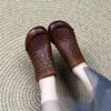 Summer 2025 New Fashion Chunky Heel, Round Head, Back Zipper, Ethnic Style, Hollowed-out Chunky Heel Low-top Sandals for Women
