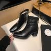 Women's Short Boots 2025 Spring Korean Style Square Head Thin Boots Short Boots Thick Heel Ankle Boots Women