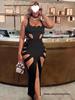 הדפס שיפוע שמלות קיץ לנשים הדפסת צווארון ללא שרוולים רצועה רחבה רצועה צולבת שמלות מקסי לנשים במידות גדולות