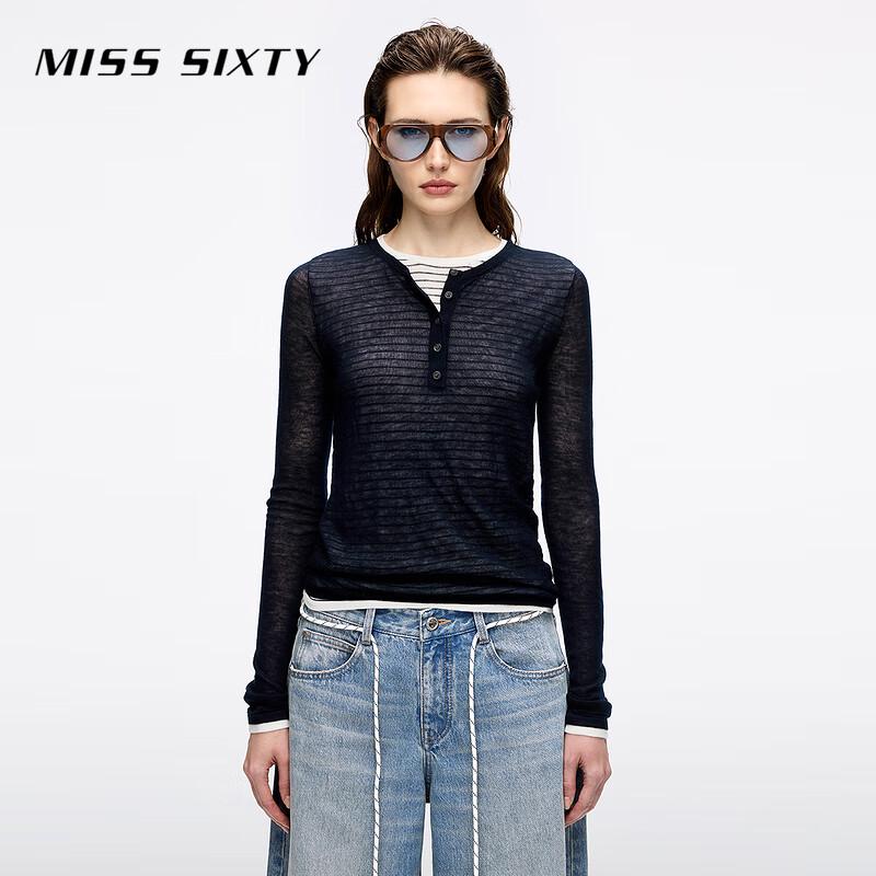 MISS SIXTY Women's 2025 Fall Faux Layered Wool Henley Knit Top
