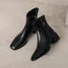Autumn and winter women's medium boots low heel large size women's boots side zipper solid color square heel square head Korean version of the new med