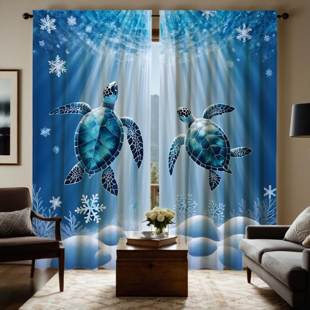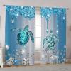 2pcs HD Sea Bottom Romantic Snowflake turtle diving decorative curtain Blue tie digital printed curtain Home Decoration style