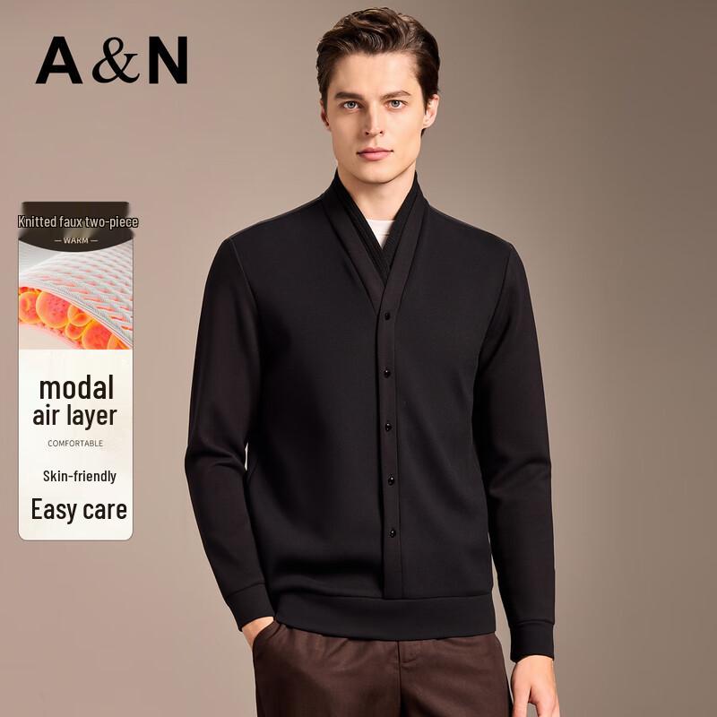 The Antonio Men's Faux Two-Piece Double Collar Knit Jacket offers warmth and style for autumn and winter. Designed for easy care, this elastic knit cardigan features a unique air layer faux two-piece design and a sophisticated double collar. Perfect for daily wear, business casual, and workplace settings for both young and middle-aged men.