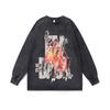 American Retro Washed Distressed Long-sleeved T-shirt for Men in Spring Pure Cotton Loose Large Size Pullover Round Neck Top