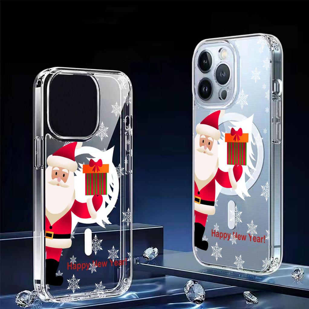 Santa Claus Gift Magnetic iPhone 15/16/17 Pro Max Transparent Full-Cover Phone Case