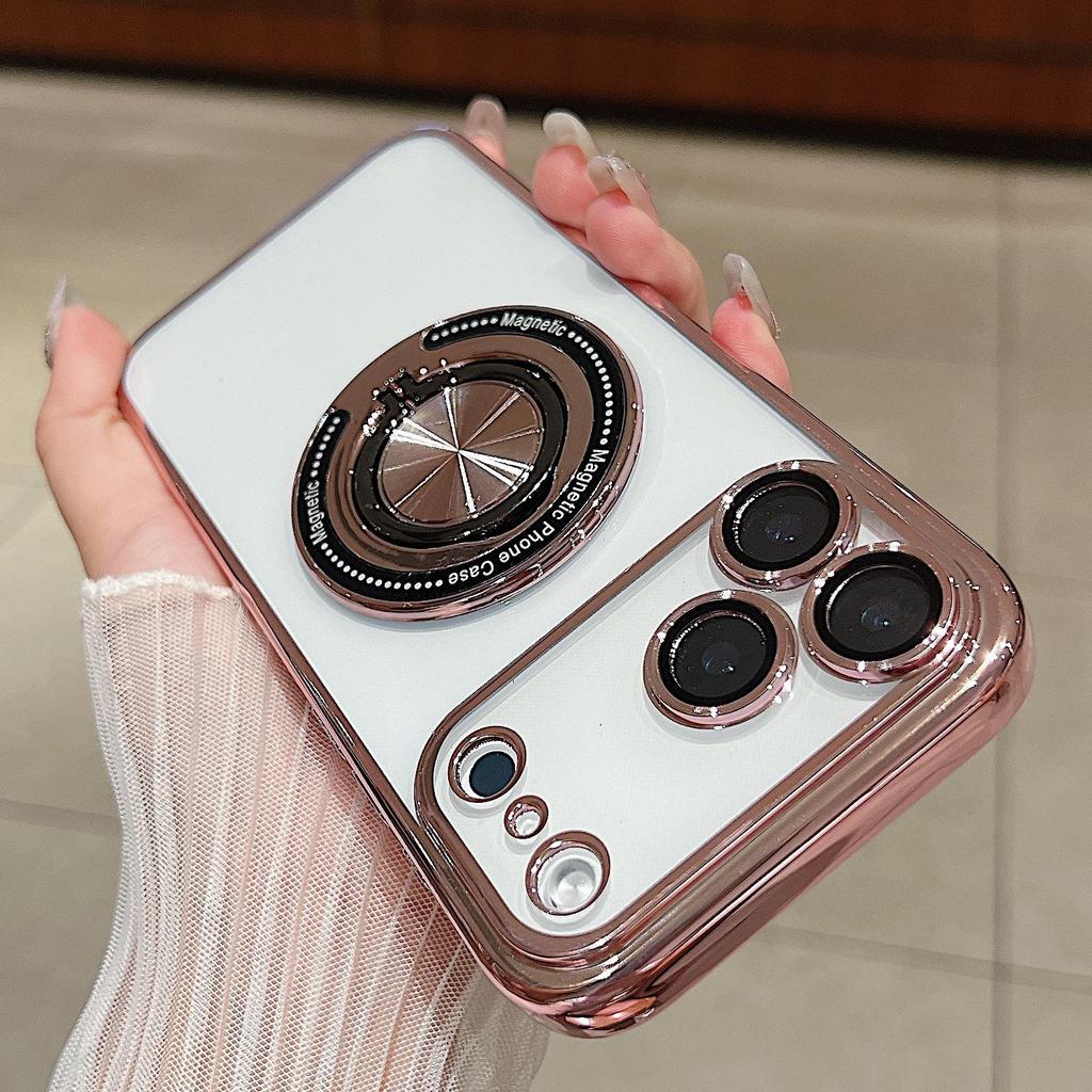 iPhone17PROMAX Electroplated Rotating Ring Magnetic Stand Case - Compatible with Apple 16 & 15 Soft Protection
