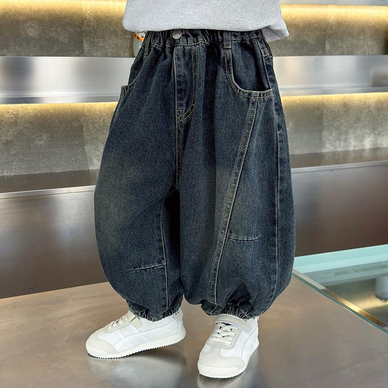 These stylish, loose-fit jeans are perfect for kids, offering a comfortable and trendy look for both spring and autumn seasons. Crafted from high-quality cotton, they ensure breathability and durability, making them ideal for active play and casual outings. These long pants provide a versatile addition to any young wardrobe, combining classic design with contemporary Korean style for a fresh, fashionable appearance.