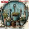 Wooden Disc Scrap Flower Pot Fork Sign 1 Piece 2D Wall Art Indoor/Outdoor Holiday Decoration Garden Room Decoration