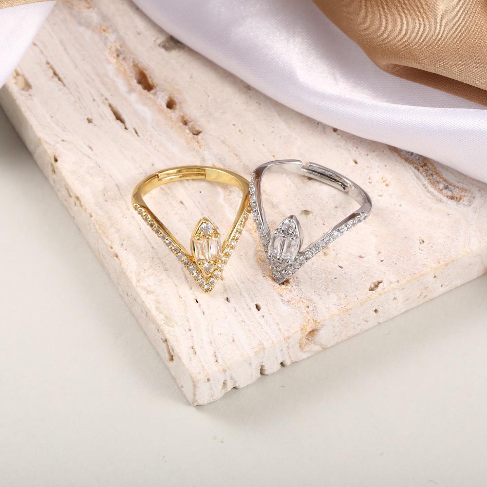 18k Copper-Plated Adjustable Teardrop Ring with Zircons – Light Luxury, Non-Fading Jewelry for Index Finger.