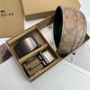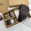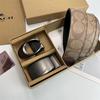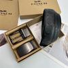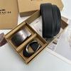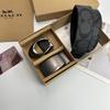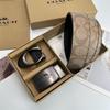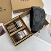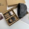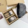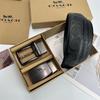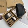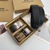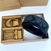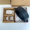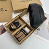 Men's Classic Double Buckle Leather Belt with C Buckle and Fabric Texture - Business Casual Trousers Accessory