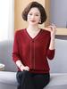 Mom's Autumn V-Neck Knitted Sweater: Fashionable, Loose, Warm Top for Middle-Aged and Elderly Women