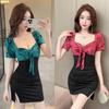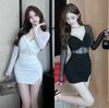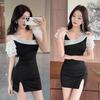 Women's Slimming Mesh-Panel Hip Wrap Slit Dress for Nightclubs