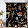 Rustic Mushroom Shower Curtain Floral Plant Leaves Moth Dragonfly Black Bathroom Curtains Polyester Fabric Home Decor with Hooks