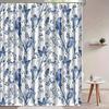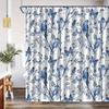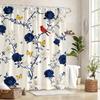 Blue Floral Shower Curtain Set, Vintage Retro Cottagecore Floral Botanical Birds Blossom Flower Boho Aesthetic Fabric Shower
