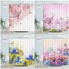 Beautiful Plant Flower Shower Curtain Eucalyptus Leaf Cherry Blossom Scenery Cat Butterfly Polyester Bath Curtain Bathroom Decor