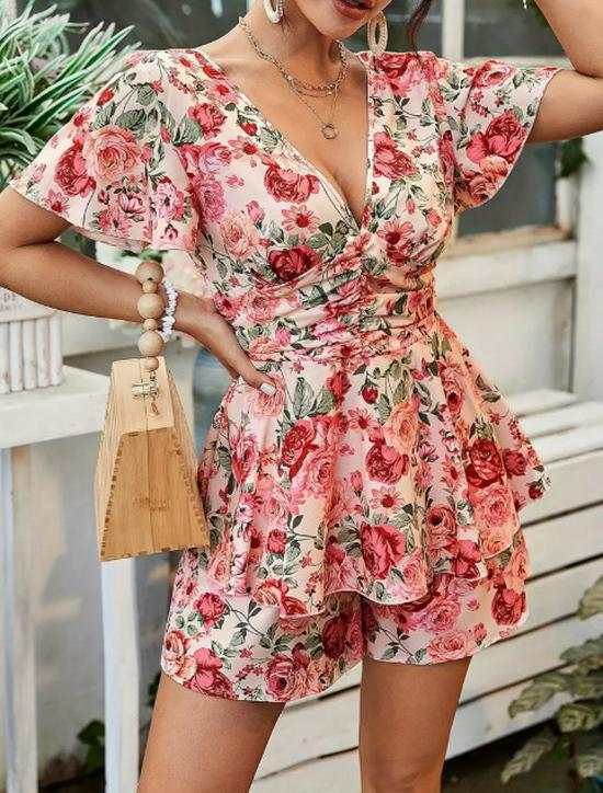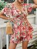 This stylish romper dress features a flattering V-neckline and a convenient front zipper, making it both chic and easy to wear. The solid pattern adds a touch of sophistication, allowing the floral design to stand out. Made entirely of polyester, this dress offers a comfortable fit and a sleek, polished look. Designed for trendsetters, it effortlessly combines European elegance with American flair, making it a versatile addition to any wardrobe. Ideal for sunny days or evening gatherings, this romper dress promises to elevate your fashion game with its contemporary yet timeless appeal.