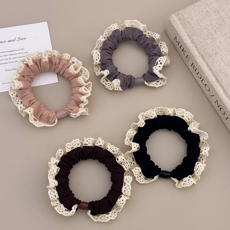Lace-trimmed Ice Silk Hair Tie, Large Intestine Hair Tie, Spring and Summer Rubber Band Hair Tie