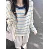 Autumn Winter Tops Sweaters for Women Loose Outer Wear Round Neck Color-blocked Retro Korean Style Versatile