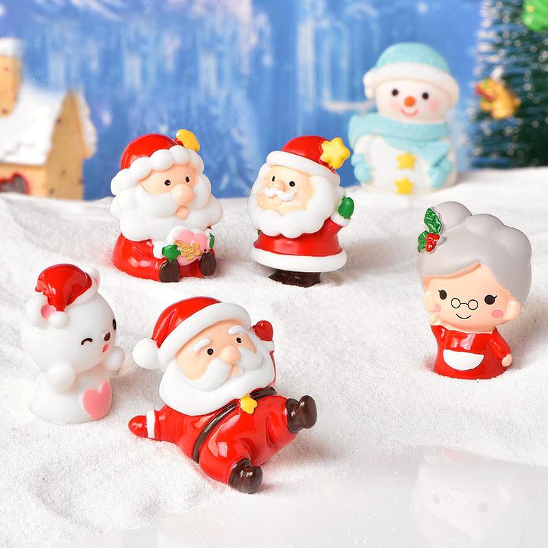 Christmas Cartoon Resin Santa & Snowman Couple Micro Landscape Ornaments