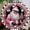 Santa Claus Christmas Wreath Wooden Hanging Sign for Wall, Door, or Window Décor