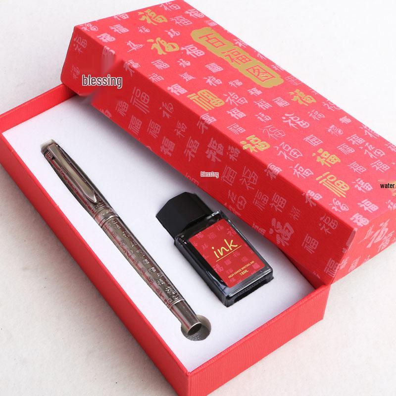 This exquisite calligraphy fountain pen features a stunning antique silver finish with a distinct brushed design known as "Hundred Blessings," symbolizing good fortune and prosperity. Its uniquely bent nib allows for smooth, expressive strokes, making it perfect for both beginners and seasoned calligraphers practicing their craft. Ideal for adding a touch of elegance to any writing task, it serves as a thoughtful and sophisticated gift for business associates or anyone with a love for the art of writing.