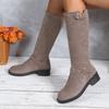 British Style Square Heel Mid-calf Knight Boots Women's Boots Fashionable Durable Buckle Decoration Retro Suede Boot Botas Mujer