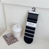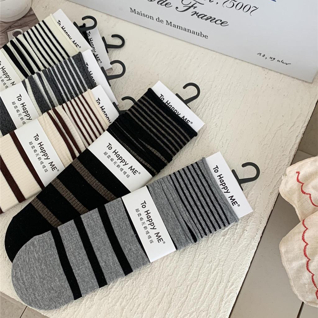 Women's Korean-Japanese Striped Mid-Calf Slouch Socks - Minimalist, Slimming, for Spring & Autumn