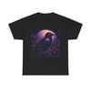 Black T Shirt with White Raven on Branch and Circle Design for Casual Wear