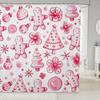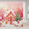 Merry Christmas Shower Curtain Pink Checked Cute Gingerbread-Man Shower Curtain With 12 Hooks Winter Snowflake Xmas Candy Bath