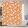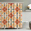 וילון מקלחת פרחוני כתום, גיאומטרי מופשט וינטג' אמצע המאה, עיצוב חדר אמבטיה בוהו רטרו, בד עמיד למים