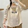 חולצת קיץ נשים וינטג' רקמה שרוול פנס שרוול שבע דקות טופים נוחים ליטרריים