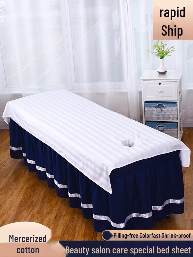 Quick-Drying Mercerized Cotton Beauty Salon Bed Sheet, Wrinkle-Resistant with Face Hole, White