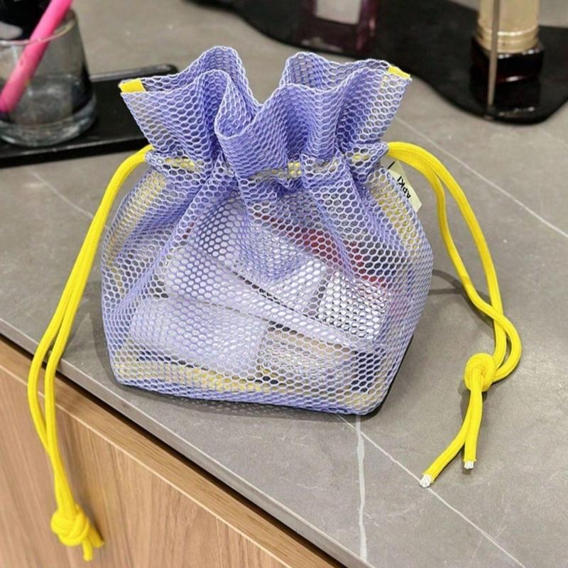 1 Piece Mesh Storage Bag, Shower Bag, Portable Mesh Drawstring Pocket,For Capacity Very Suitable For Travel And Beach Use