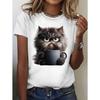 Girl Clothes Kawaii Cat Pattern Print Summer Short Sleeve Tops Casual Fashion T-Shirt Outdoor Lightweight Children's Clothing