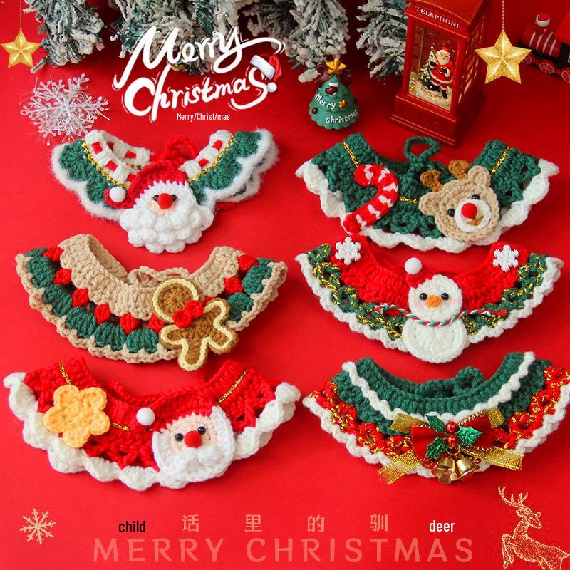 Hand-Knitted Wool Christmas Pet Snood Collar for Cats and Small Dogs